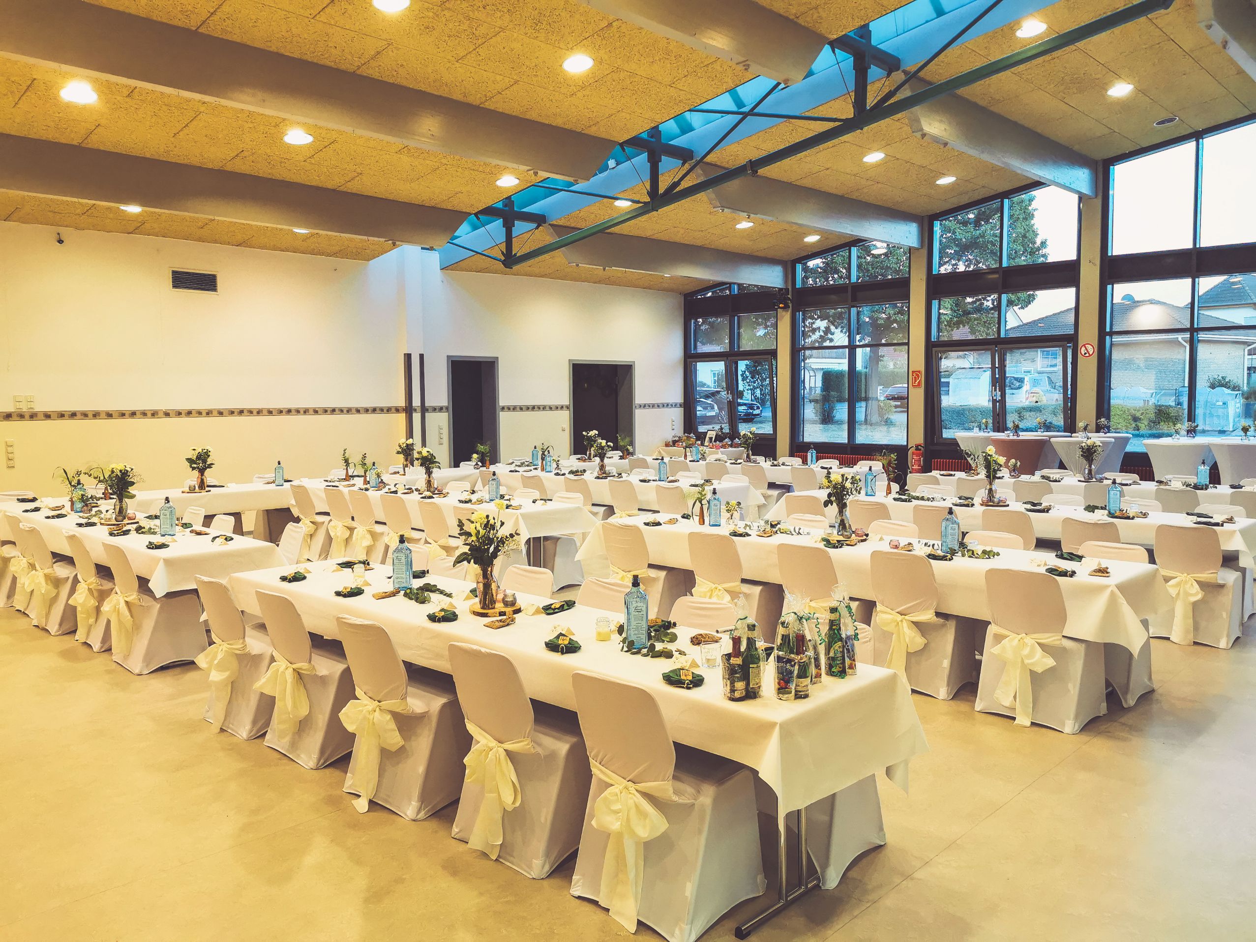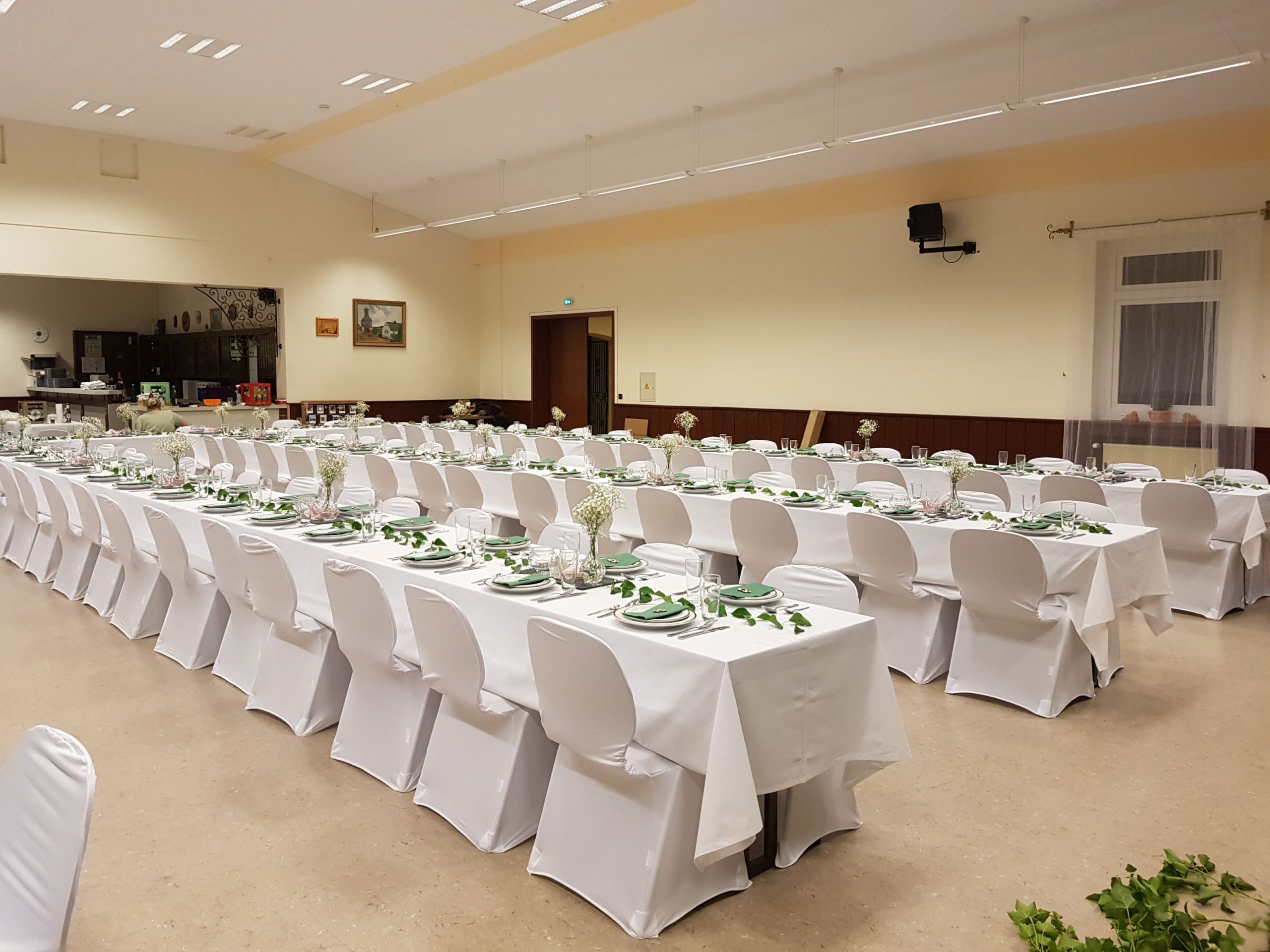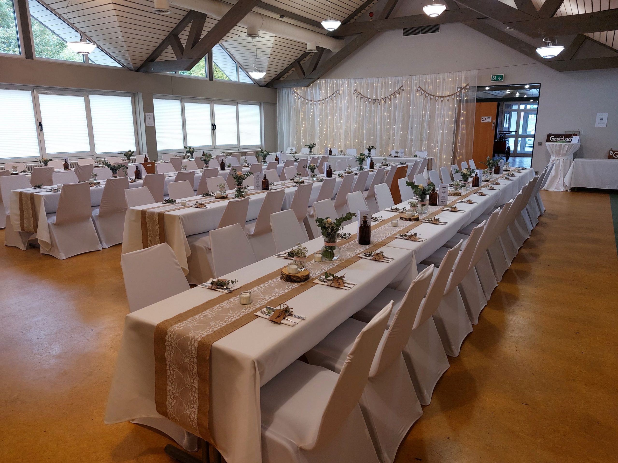 Sehen Stuhlbezüge auch in einer Turnhalle gut aus?